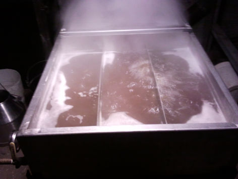 In the 70's Freddy tapped trees and collected sap by fixing 1 gallon milk jugs to the trees. He would empty the gallons into 40qt milk cans. Freddy dragged the milk cans through the woods, to the collection tank; which was an old milk house tank.